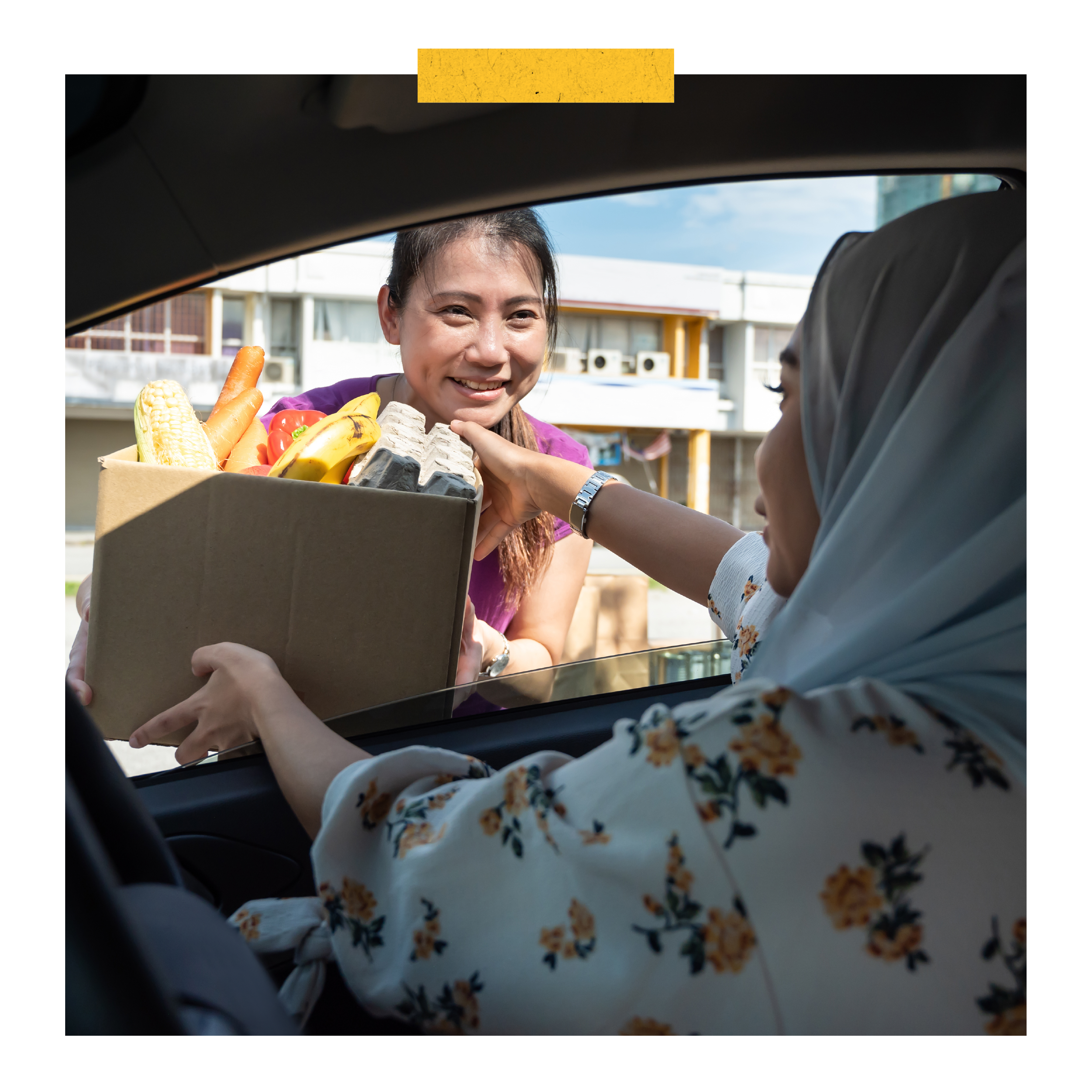 - by receiving a pre-packed food hamper via pick up or delivery.