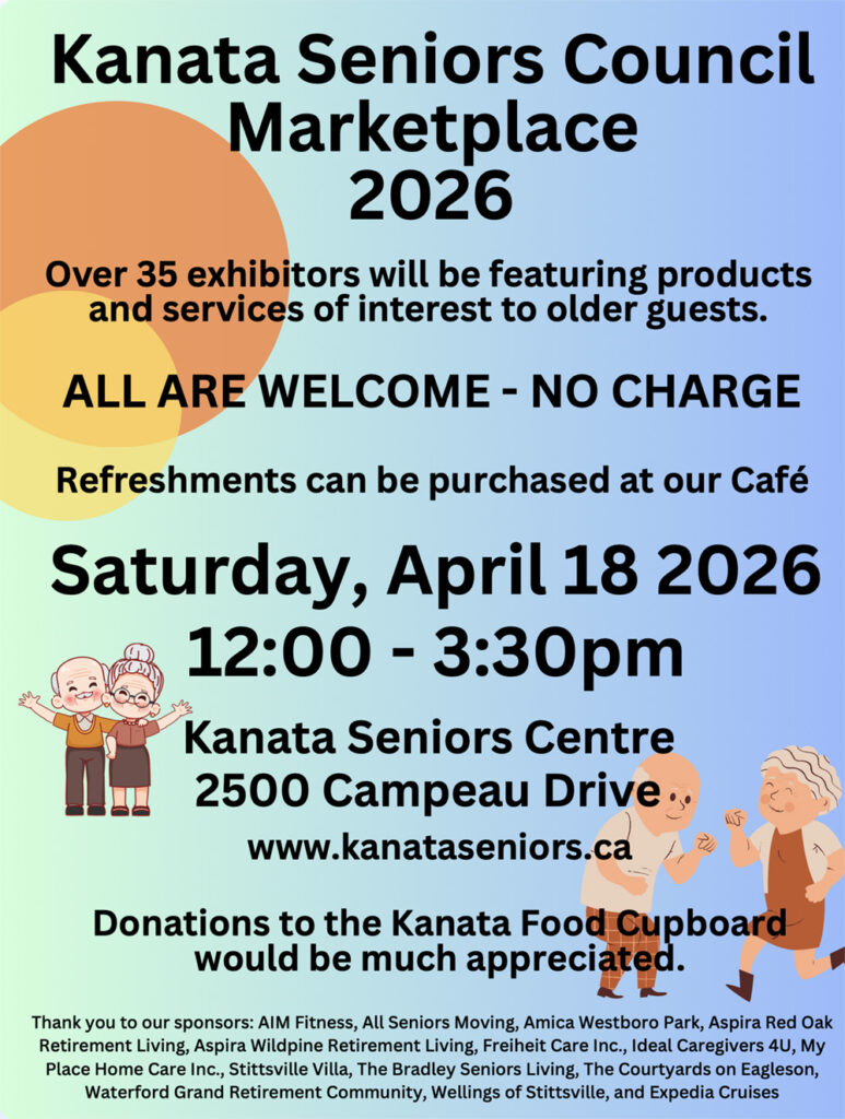 Saturday, April 18th is the 2026 Kanata Seniors Council Marketplace